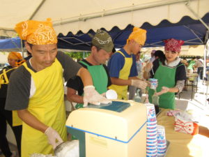 大変暑い日でしたので、予想以上の売れ行きでした。特にかき氷は飛ぶように売れ大変忙しかったですが、呼び込み、券の販売とお金の計算、商品づくり、後片付など充実した訓練になりました。