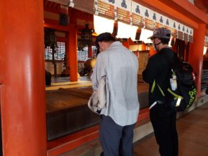 厳島神社グループは真剣にお祈り。何をお祈りしているのでしょう。