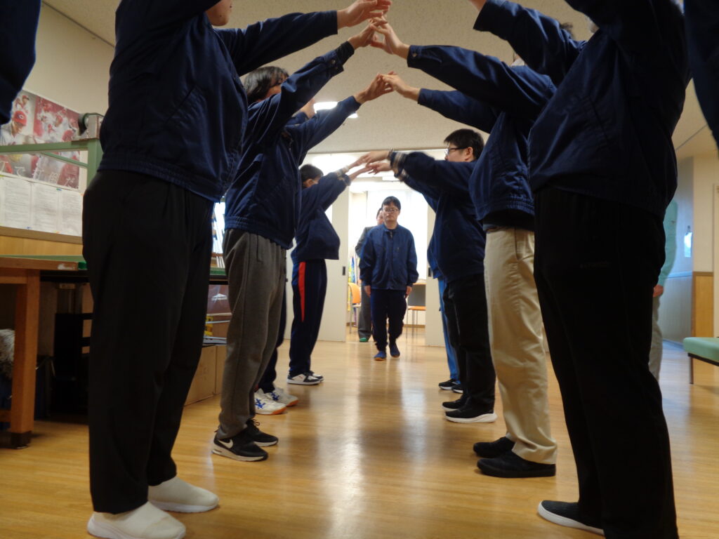 いよいよお別れです。訓練生と職員でつくるアーチをくぐって修了していかれます。修了生とご家族の方にくぐっていただきます。「おめでとう」「がんばれよ」という声もかけられます。
