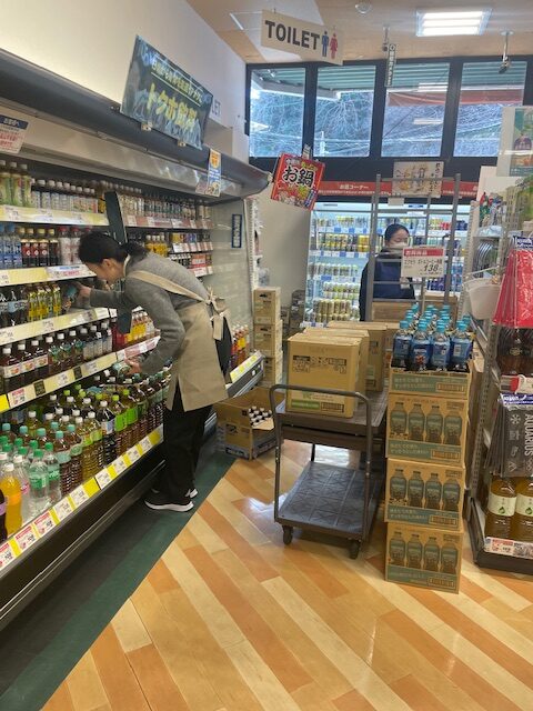 スパーで実習をさせていただきました。飲料品の品出しをしています。